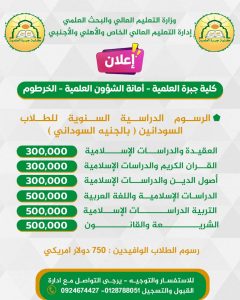 💰 الرسوم الدراسية السنوية للطلاب السودانيين (بالجنيه السوداني):